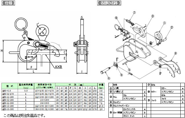 つり荷のフランジ幅と厚さに適合したクランプを使用してください。指定されたH形鋼以外のつり上げはできません。