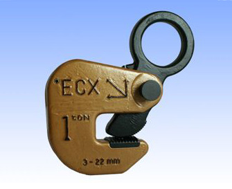 クランプのアゴ部が、二股になっているのでH形鋼等の 長手方向や補強材を挟んでつり上げるのに最適