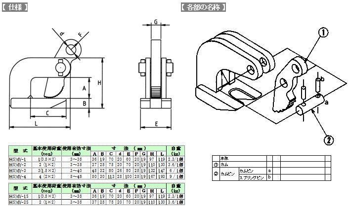 HJ・HF共に弊社独自のワンリンクユニバーサルシャックルにより、つり上げ時にクランプ本体の傾きがワイヤー角度の影響を受けにくく安定するために、吊荷に傷がつきにくくなっています。